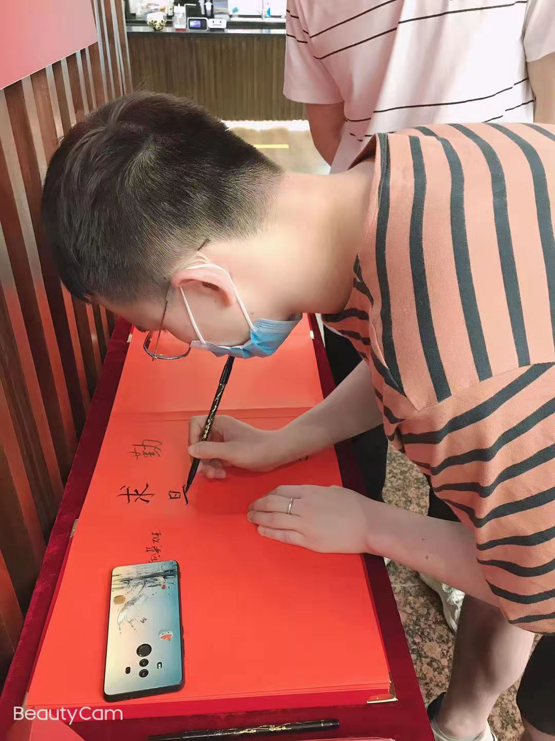 在展览最后的留言簿上,詹应锦同志代表党支部写下“求是 仁爱 勤勉 卓越”浙大儿院院训。