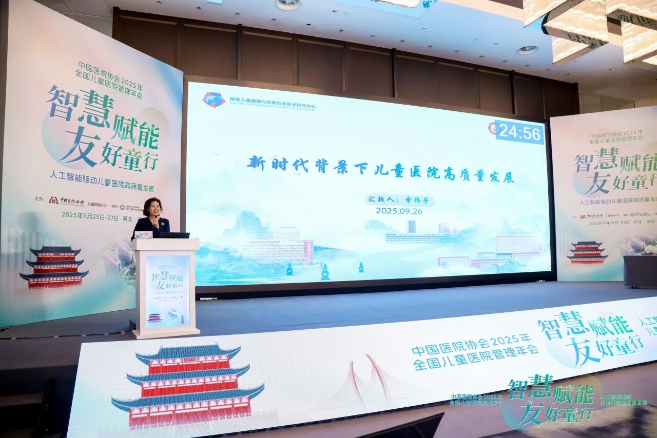 来源: 发布时间:2025-09-272025年9月25-27日,2025年全国儿童医院管理年会在河北保定召开。会议以“智慧赋能·友好童行--人工智能驱动儿童医院高质量发展”为主题,由中国医院协会儿童医院分会主办,围绕质控管理、儿童健康传播等主题设有10个学术专题会。本次会议汇聚了国家卫生行政部门领导以及来自全国各地的头部医院管理者和儿科专家,是全国儿科领域聚焦前沿、引领发展的高水平学术盛会。浙大儿院党委书记章伟芳、常务副院长邹朝春受邀参加本次会议。
