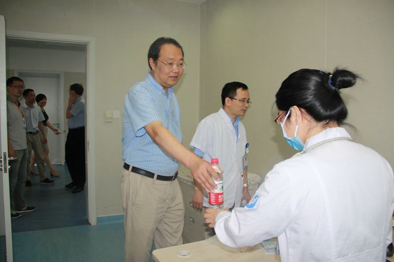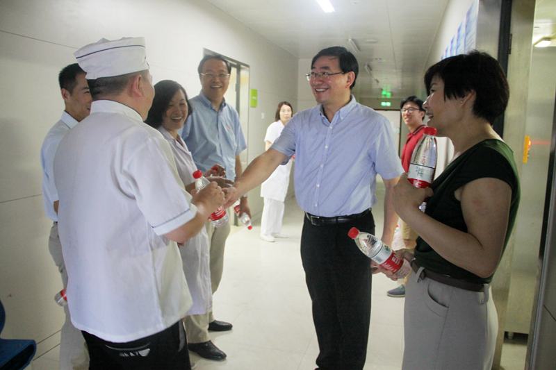 来源: 发布时间:2016-07-28入伏以来,杭城持续数天“高烧不退”,作为全省最大的儿童专科医院,由于儿童特殊性,历年来暑期也是一年中医院最繁忙的时期,为了让高温天气下依然坚守在临床一线的工作人员感受到一份“清凉”,7月26日上午,我院院长杜立中、党委书记舒强带领院领导班子成员分别在湖滨、滨江院区开展了“送清凉”慰问活动。