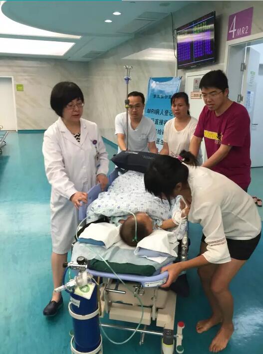 医院开放了绿色通道,紧急为孩子做CT,B超等检查。成成当时病情很不稳定,外出检查过程中随时可能陷入重度昏迷、脑疝、循环和呼吸功能衰竭,为尽最大努力抢救患儿,谈林华主任、赵国强副主任还亲自全程陪同着患儿一起去做颅脑和脊柱脊髓的磁共振检查,第一时间了解成成的病情进展情况,然后回病房迅速与各相关专业的专家讨论下一步的诊治方案,会诊一直进行到晚上。